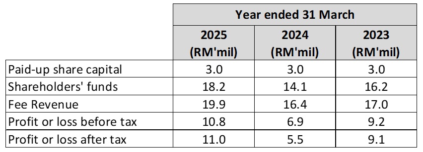As at Financial Year End 2025 (31 March 2025), the total value of assets under management is RM10.6 billion, including private mandates and collective investment schemes (i.e 12 unit trust funds, 4 wholesale funds, and 3 private retirement schemes)*.